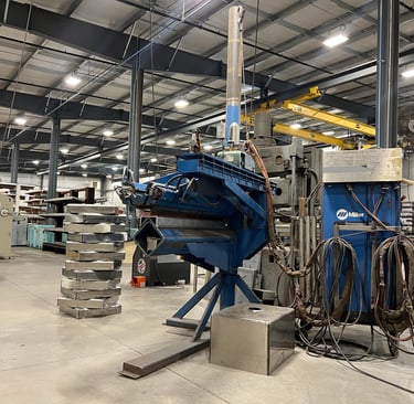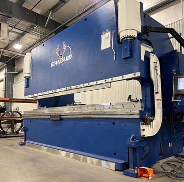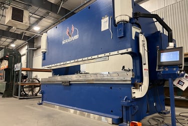 Press Brake: Our 14' long, 200 ton press is capable of bending large metal sheets with precision.